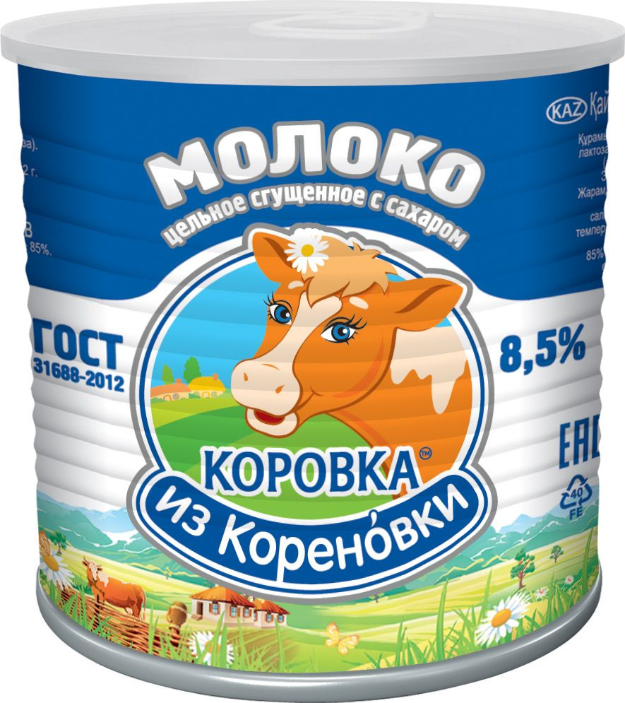 КОРОВКА ИЗ КОРЕНОВКИ МОЛОКО СГУЩЕННОЕ ЦЕЛЬНОЕ 360 ГР. Ж/Б С КРЫШКОЙ